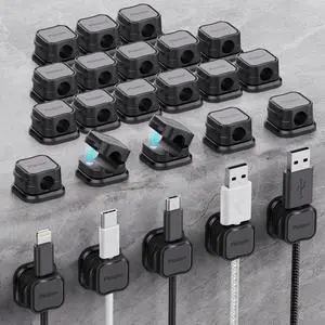 30-Pack Magnetic Cable Clips Cord Organizer,Cable Straps Smooth Adjustable,Rocoren Cable Management Accessories,Cable Holder Clips Wire Holder Keeper for Desktop,Nightstand,Home Office,Workspace,Phone