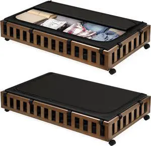 2 Pack Bamboo Under Bed Storage with Wheels, 39x20x7.8 Lager Under Bed Storage Containers (Brown)
