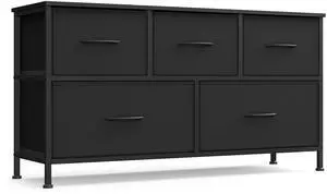 5 Drawer Rattan Dresser, Modern Closet Dresser for Bedroom, Natural Rattan Chest of Drawers with Metal Handles & Wooden Legs, Chest Clothing Organizer & Storage for Bedroom, Living Room, Hallway
