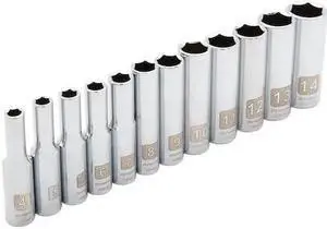 DYNAMIC D004003 Tools 1/4" Drive 12 Piece 6 Point, Deep Metric Socket Set, 4mm
