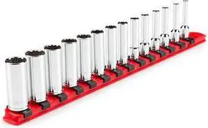 TEKTON SHD90114 1/4 Inch Drive Deep 12-Point Socket Set with Rail, 14-Piece