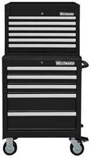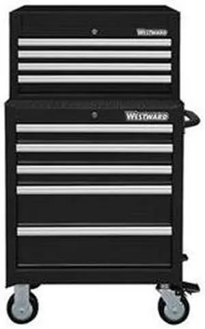WESTWARD 7CX98 26"W Tool Chest and Cabinet Combination 9 Drawers, Black,
