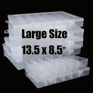 4Pack Large 24 Grids Plastic Organizer Box with Dividers - 24 Compartment Organizer, Clear Tackle Box Organizers and Craft Storage with Adjustable Removable Divider, Fishing Organizer Box for Art DIY