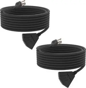 2 Pack 25 Ft Outdoor Extension Cord with 3 Electrical Power Outlets - 16/3 SJTW Black Cable with 3 Prong Grounded Plug