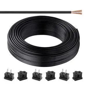 SPT-1 100 ft 18/2 Wire Electrical Wire with 6 Plugs 18 AWG Wire 18 Gauge Wire for LED Lighting Strip Lamp, Lamp Extension Cable, Residential Outdoor Commercial Industrial, Black