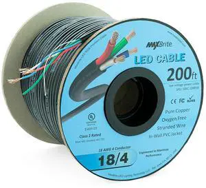 100 ft. 18AWG Low Voltage LED Cable 4 Conductor Black Sleeve In-Wall RGB Wire UL Class 2 Certified
