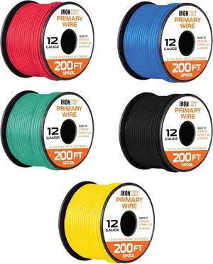Iron Forge Cable 12 Gauge Primary Automotive Wire - 5 Roll Assortment Pack 1000 Ft Total Length - 200 Ft of Copper Clad Aluminum Wire per Roll - for Home or Automotive