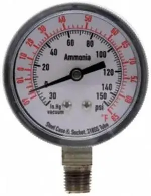 ZORO SELECT 4CFW6 Compound Gauge,Ammonia,2 1/2 In,150 Psi