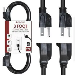 Digital Energy 3 Prong 3 Foot Indoor Outdoor Extension Cords 2 Pack, Heavy Duty Power Cords 13A 125V 60Hz 1625W, UL Listed, Black