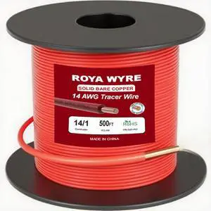 ROYA WYRE 14 AWG Tracer Wire 600V Solid Conductor Direct Burial, Underground Tracer Wire for Locating Underground Pipes Line Gas Water Sewer Pipe and Fiber Optic, (500FT)