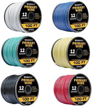 Wamarin 12 Gauge Wire Combo, 6 Colors, 100ft Rolls (600ft Total) - Durable Copper Clad Aluminium, Ideal for Heavy-Duty Auto & Home Projects, Insulated
