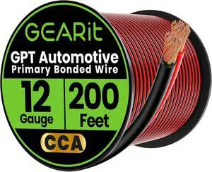 GEARit 12 Gauge Wire (200ft - Black/Red) GPT Automotive Primary Bonded Wire - 2 Conductor CCA for Car Audio, Speaker, Trailer Harness, Electrical - 200 Feet Total 12ga awg