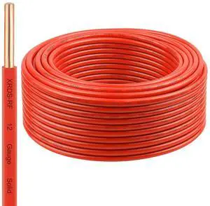 THHN Wire 100 FT, Single Bare Copper Conductor, 12AWG Red Electrical Wire, Solid Building Wire 600V Nylon Sheath Cable for Indoor/Outdoor Applications