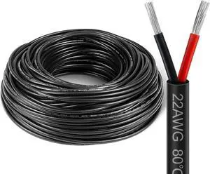 22 Gauge 2 Conductor Electrical Wire, 22 AWG Red & Black Tinned Copper Hookup Wire, 164Ft/50M Insulated Stranded Low Voltage, 2 Pin Flexible Extension Power Cord for LED Strips Lamps Lighting