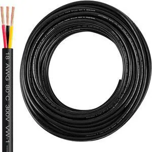 18 Gauge 3 Conductor Electrical Wire - 50ft Stranded PVC Cord Oxygen-Free Copper Cable for Power Cord, Low Voltage LED Cable, LED Strips, Lamps, and Automotive Lighting - 18/3 AWG