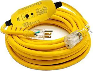 50 ft GFCI Extension Cord - 12 Gauge Outdoor Extension_Cord - Lighted Single Outlet by Watt's Wire - 50' 12-Gauge Grounded 15 Amp Cord - GFCI Cord Outdoor - extensiones electricas