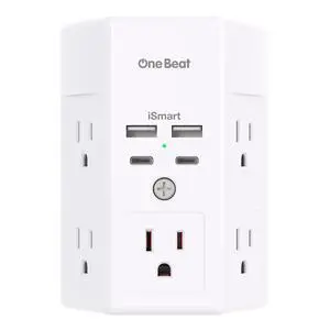 Wall Mount Power Strips Wall Charger 6 Outlet Extender 4 USB Ports (5V, 2.4A, 12W) and Night Light 3-Sided Power Strip with Adapter Spaced Outlets - Multi Plug Outlet Surge Protector for Home Office