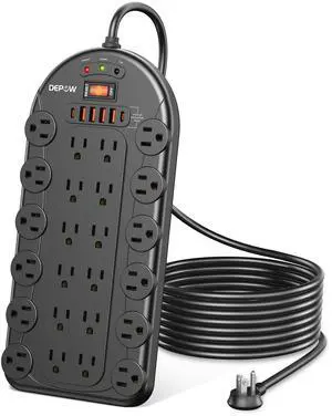 Surge Protector Power Strip 10 FT Cord, Power Strip Tower with 4 USB Ports (1USB C), Extension Cord with 12 AC Multiple Outlets, Home Office Supplies Desk Accessories, Dorm Room Essentials