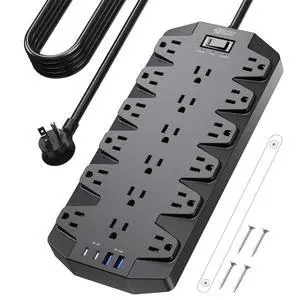Power Strip, 24 AC Outlets (1875W/15A) with 6 USBs (2 USB-C Ports), ETL Listed, Surge Protector (3,400 Joules), 8 Ft Heavy Duty Flat Plug Extension Cord, Wall Mountable for Home, Office, Black