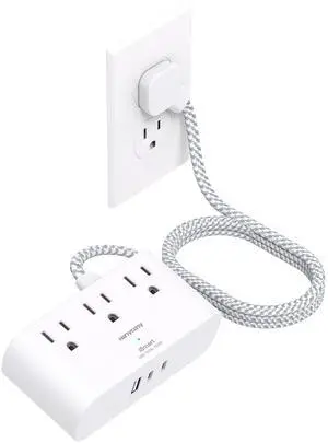 5Ft Extension Cord with Multiple Outlets, Flat Plug Power Strip Surge Protector with 5 Ft Long Cord, 6 Outlet 3 USB Ports (1 USB C), Multi Outlet Wall Plug for Travel, College, Dorm Room Essentials