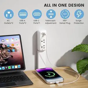 Electrical Outlet Extender Stick-Extension Cord with 2 USB-A,USB-C and 2 AC Outlet Extender,Power Strips Extendable 6", 15.3", 24.5", 34" for Behind Couches,Bed