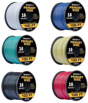 Wamarin 16 Gauge Wire Combo, 6 Colors, 100ft Rolls (600ft Total) - Durable Copper Clad Aluminium, Ideal for Heavy-Duty Auto & Home Projects, Insulated