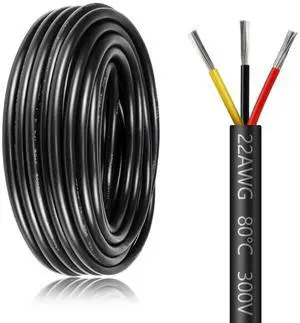 22 Gauge Wire 3 Conductor, 65.6FT 22AWG Electrical Wire, 22/3 Stranded Tinned Copper Wire, Insulated PVC Cord Low Voltage Cable