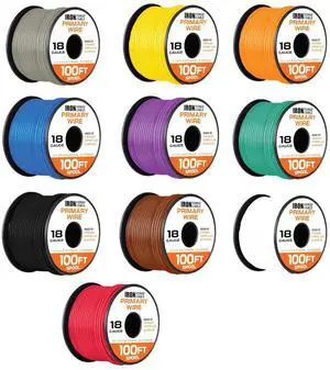 Iron Forge Cable 1000 ft 18 Gauge Primary Automotive Wire Assortment Pack - 10 Roll Bulk - 18 AWG Auto Wires - 100 Ft Copper Clad Aluminum Cable per Roll