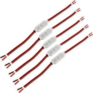 Low-profile Inline Controller Dimmer Switch for LED Strip Light, Bare Wire 5 Pack