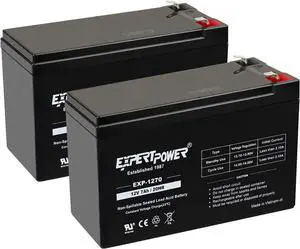 ExpertPower 12V 7Ah - SLA Rechargeable 12V Battery (Pack of 2) for Ride-On Toys, UPS, Feeder, Exit Sign, Small 12 Volt Battery for Alarm System, Sealed Lead Acid Fire Alarm Batteries w/ F1 Terminals