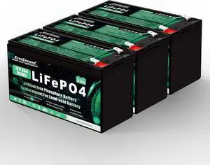 EverExceed 12V 8Ah Lifepo4 Battery 3000+ Deep Cycles 12V Lithium Battery for Solar/Wind Power, Lighting, Fish Finder, Power Wheels and More, Built-in 10A BMS, 3 Pack