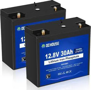 DC HOUSE 2 Pack 12V 30Ah LiFePO4 Lithium Battery with DC Port, Low Temp Cut-Off, 4000+ Deep Cycle Rechargeable Battery, for Trolling Motor, Lighting, Solar, Camping, Ham Radio, Ride on Toy