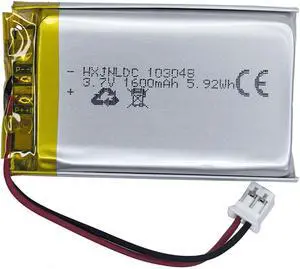 DC 3.7V 1600mAh 103048 Rechargeable Lithium Polymer Battery, Suitable for DIY 3.7-5V Electronic Products with Built-in 2-Wire Battery Replacement and LED Lights