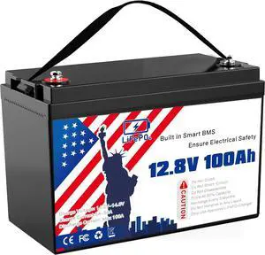 12V 100Ah Lifepo4 Battery, Bci Group 24 Size, Built-In 100A Smart BMS, 4500+ Deep Cycle Grade A Lithium Cells For RV Travel,Trolling Motor,Marine, Boat, Solar Panel, Off Grid, Camping (1PC)