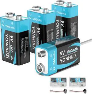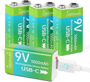Tenergy 9V 600mAh Li-ion Rechargeable Batteries, 10 Pack