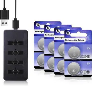 2450 Rechargeable Batteries with Charger 3V Replacement CR2450 Lithium Coin Battery(8 Pack)