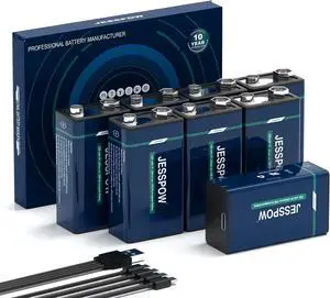 8 Pack Rechargeable 9 Volt Batteries USB Rechargeable, High Capacity 1300mAh 9V Lithium Battery with Type C Charging Cable for Electric Guitar, Microphone,Smoke Alarms Detector,Household and More