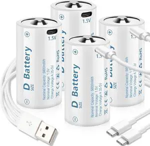 D Batteries, Rechargeable D Batteries 4 Pack,D Cell Batteries with Type C Charger Cable,12000mWh 1.5V Lithium Battery D Size