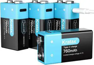 Kratax USB 9v Rechargeable Lithium Batteries 4 Pack 6840mWh 9 Volt Li-ion Rechargeable Battery with 2H Quick Charge Cable, 1500 Cycles Long Lasting for Smoke Detectors, Microphones
