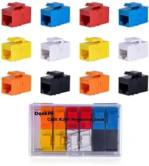 12-Pack Cat6 RJ45 Keystone Jack Insert, Ethernet Keystone Jack for Patch Panel, Multicolor
