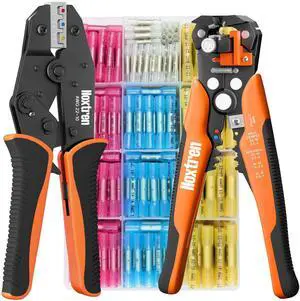Crimping Tool for Heat Shrink Connectors HS-8327 with 200PCS Marine Grade Heat Shrink Butt Connectors of Tinned Red Copper AWG 22-10