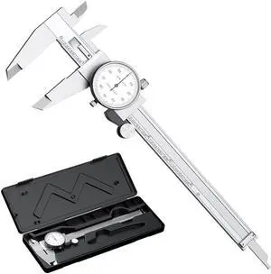 Dial Caliper with Adjustable Bezel and Fitted Case - White Face, 0-6" Range, +/-0.001" Accuracy, .001" Graduations - 3202-6