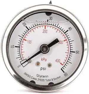 ZORO SELECT 4CFN4 Pressure Gauge,Liquid Filled,1-1/2 In