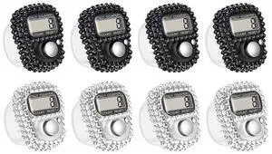 8PCS Electronic Finger Counter, Electronic Handheld Tally Counter, Digital Electronic Tasbeeh Counters, Manual Digital Clicker, for Row People, Score, Inventory, Store (Black, White)