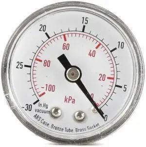 ZORO SELECT 4FLZ2 Vacuum Gauge,30to0 in Hg Vac,-100to0 kPa