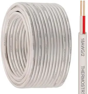 Thermostat Wire - 18/2 100FT Solid Copper 18AWG 2 Conductor Power Circuit Cable for Heating & air Conditioning Equipment, doorbells and Other Indoor/Outdoor Low Voltage Applications Use(White)