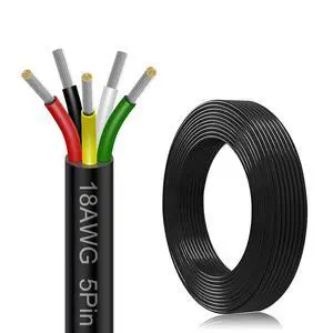 18 Gauge Electrical Wire 5 Conductor, 18AWG 50FT PVC Stranded, 18/5 Low Voltage LED Cable, Flexible Extension Power Cord, Tinned Copper Cable Hookup Wire