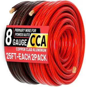 8 Gauge Wire, for Automotive Power/Ground, Battery Cable, Car Audio, RV, Amp, CCA, Automotive Wire, Amp Kit, Battery Cables, Wiring Kit, (25 feet Each- Black/Red)