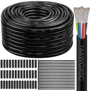 14 Gauge 5 Conductor Electrical Wire, 14 AWG Tinned Copper Stranded PVC Cable, Waterproof/Flexible/Low Voltage Extension Cord for Automotive, Marine, Solar, LED Lighting (100FT)