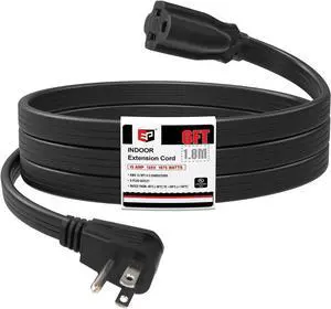 EP 6 Ft Heavy Duty Appliance Extension Cord - 14 Gauge 3 Prong Grounded Cable Wire, Ideal for Air Conditioners, Refrigerators, Microwaves, Washing Machines & More - Indoor Use, Black
